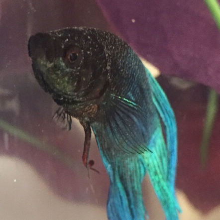 Even if an aquarium appears spotless, there’s still bacteria present in it, and if the fish is unwell, certain bacteria will start to infect the fish. It can be hard to know what’s caused a bacterial infection and how it’s affecting the fish. The betta on the right appears to have translucent skin and decaying scales. This could be a subcutaneous infection or an affect of an internal infection. Dropsy is also a huge indicator of an internal bacterial infection; the fish will swell and his or her scales will pine cone.